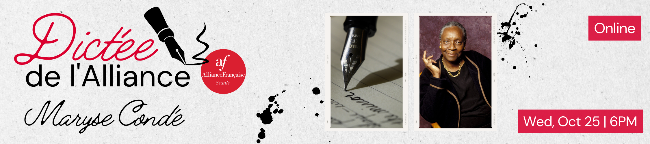 Hello Francophones and French learners! Join us for your favorite French exercise, the dictée, a virtual event hosted by  the Alliance Française de Seattle. We will be exploring an excerpt from Maryse Condé, a French novelist from Guadeloupe, famous for her novel Ségou and her work exploring the African diaspora.