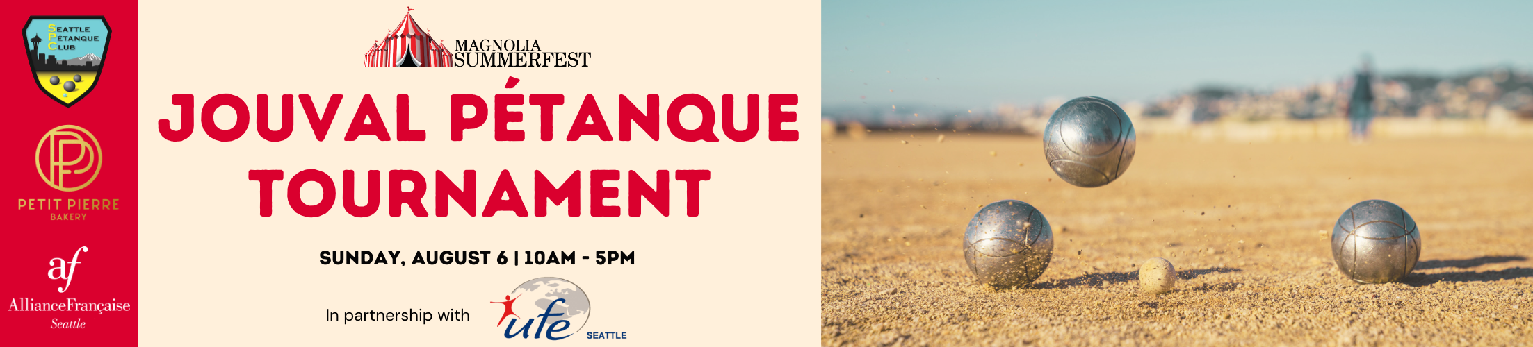 Join us at the annual Magnolia SummerFest on Sunday, August 6 from 10am - 5pm to test your pétanque skills or cheer for your favorite team!