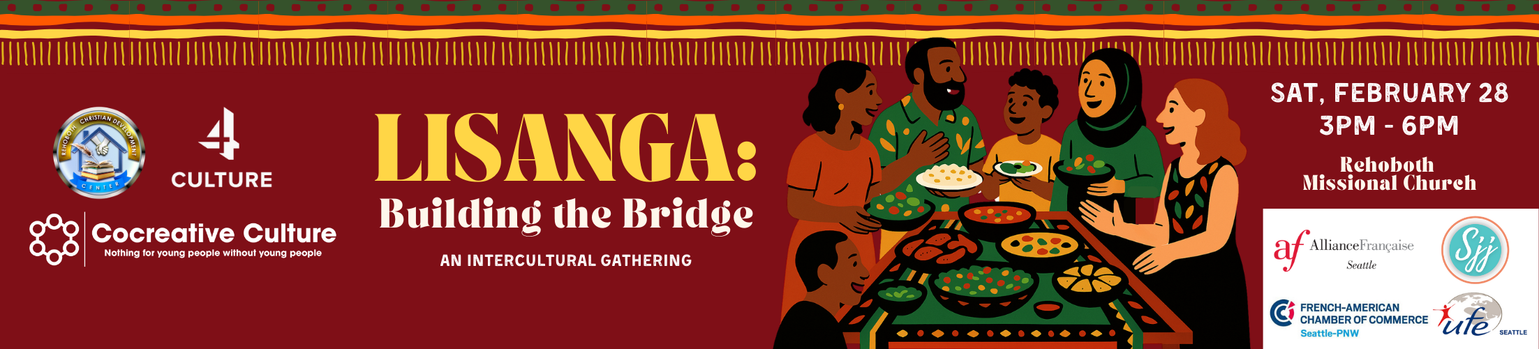 Organized by Cocreative Culture and Rehoboth Christian Development Center in partnership with the Alliance Française de Seattle, UFE Seattle, French American Chamber of Commerce, and SJJ Agency.