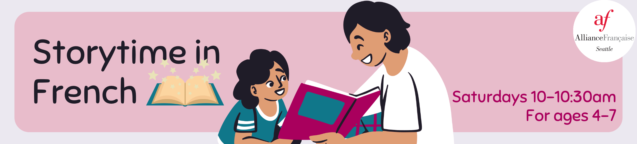 Join us on Saturday, June 3 from 10am to 10:30am at the Alliance Française de Seattle; we will read a selection of fun and exciting books in French (with English when needed!). Parents welcome!